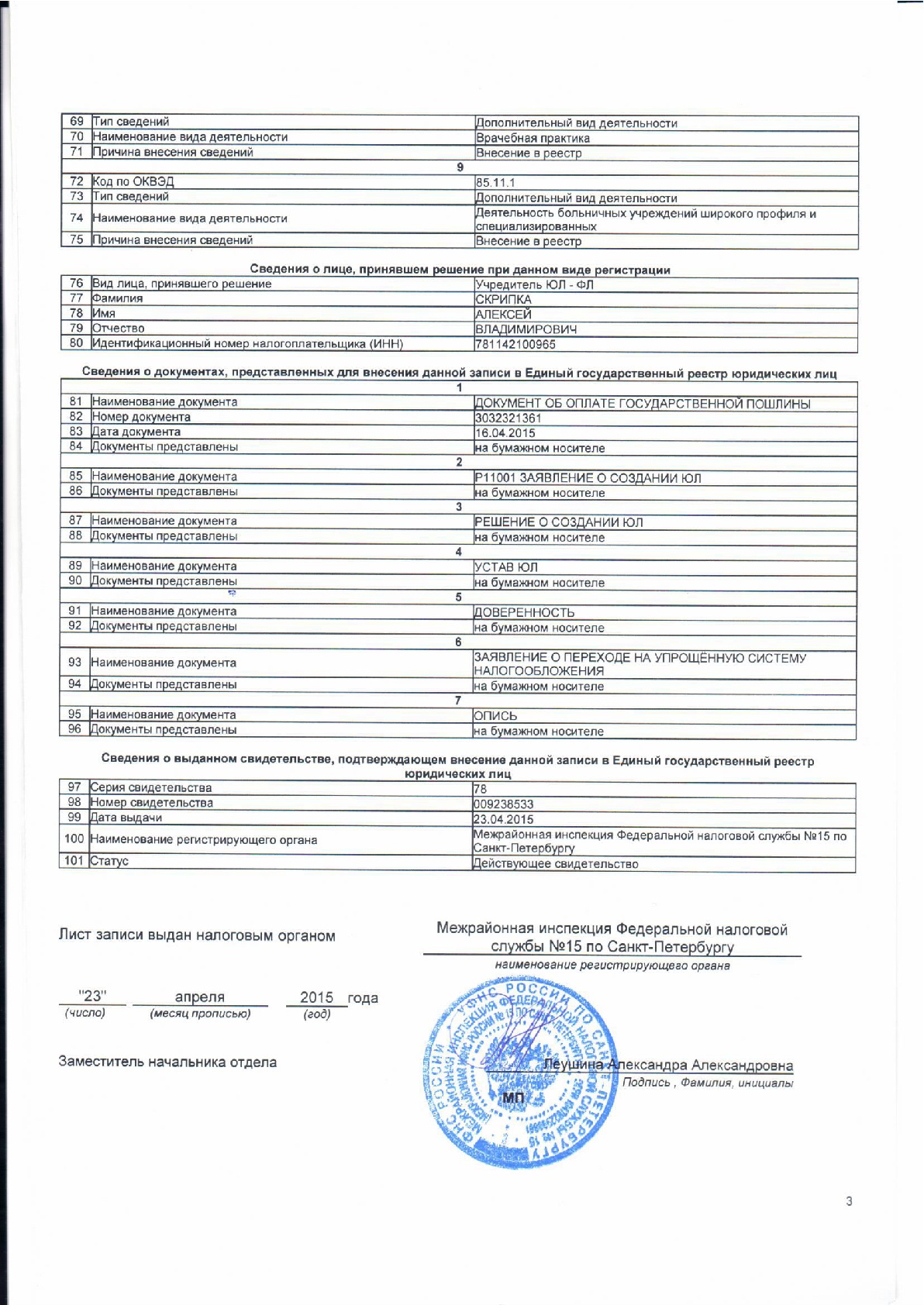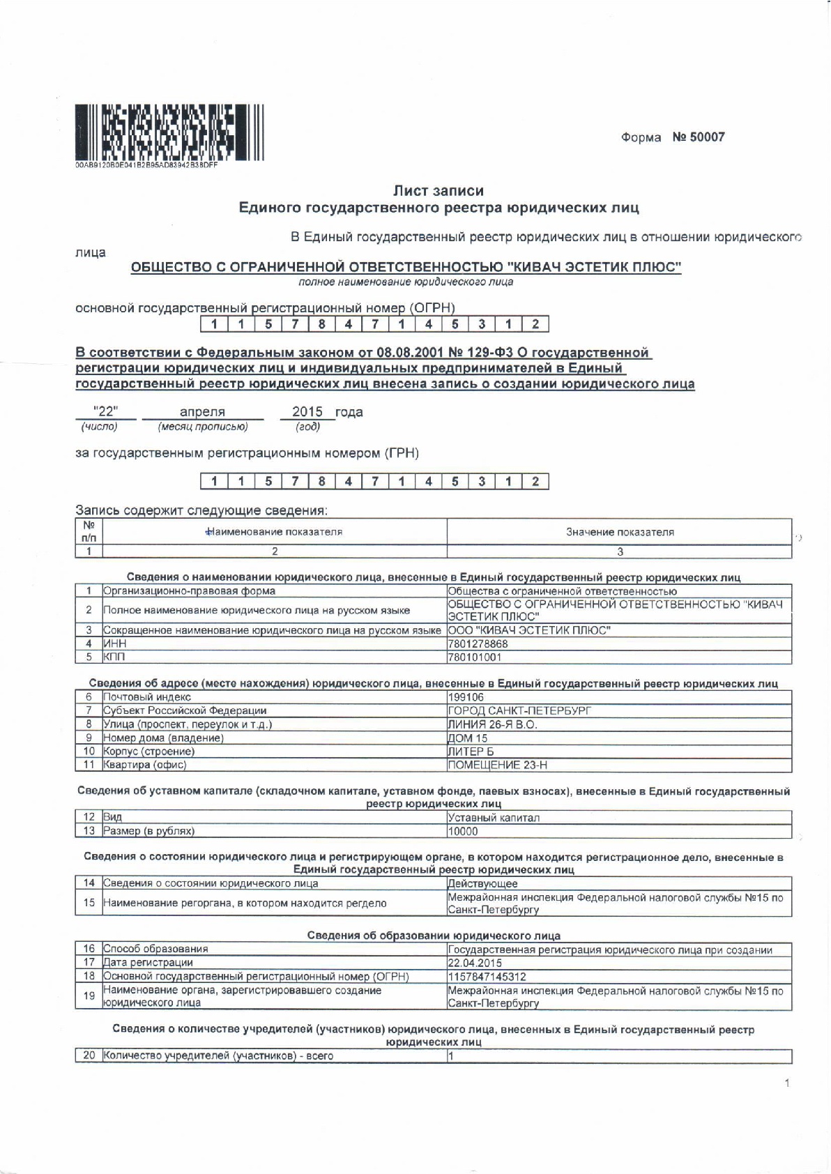 Выписка из ЕГРЮЛ